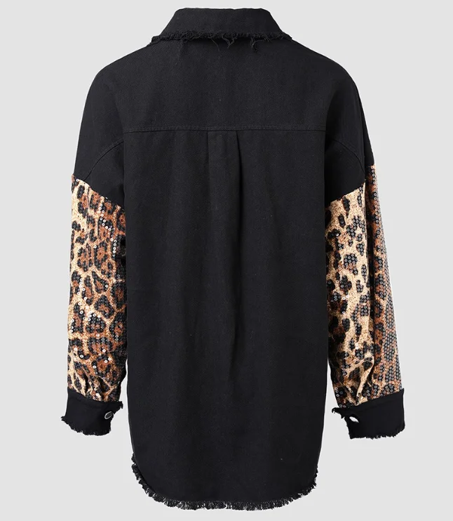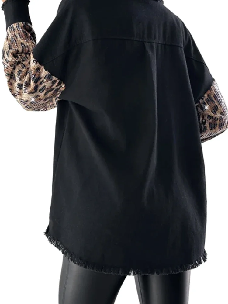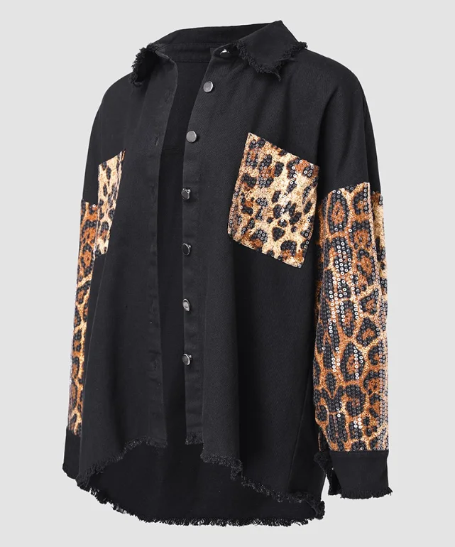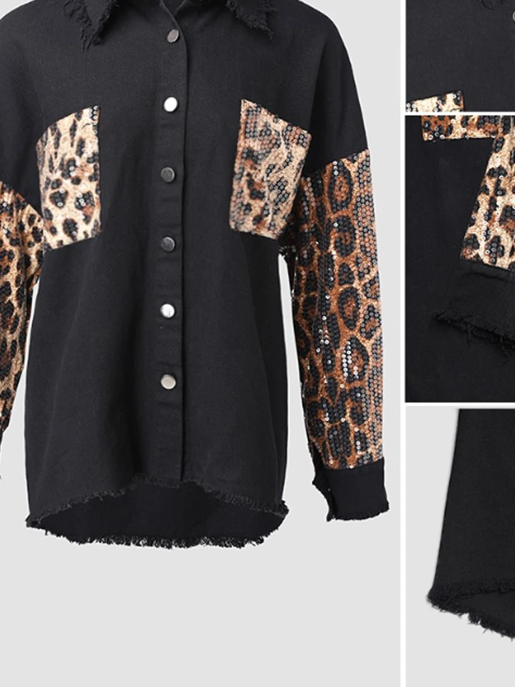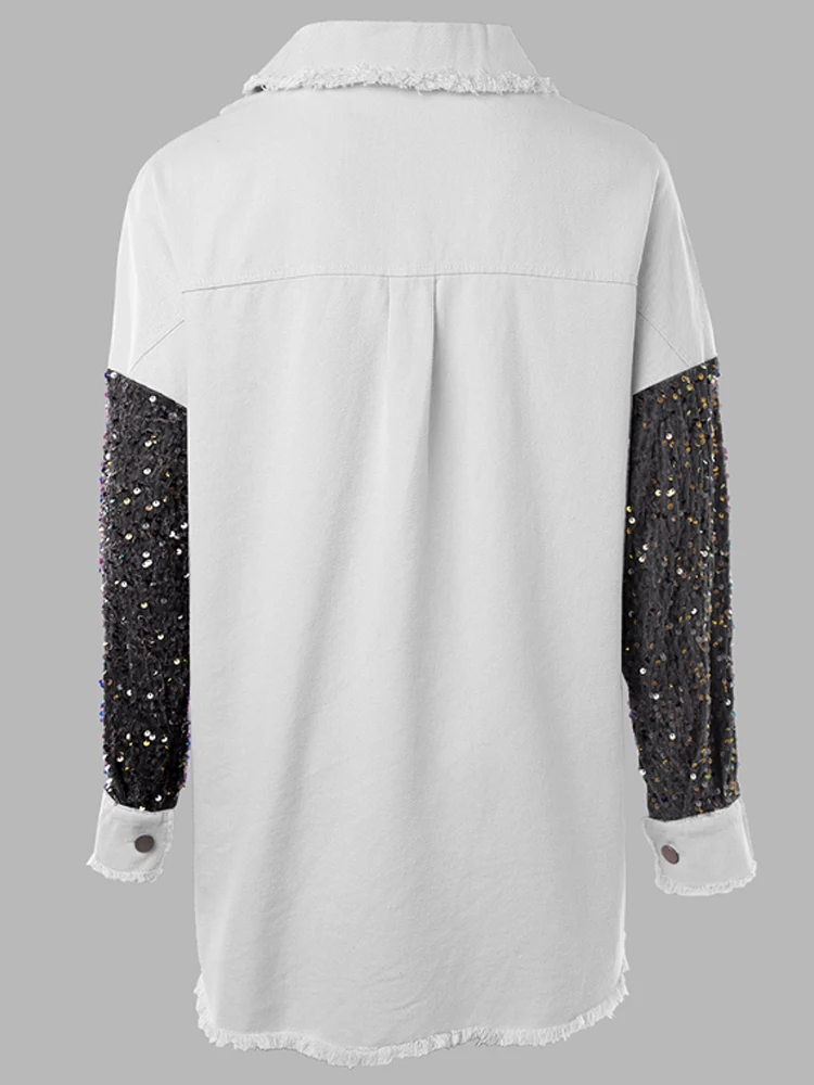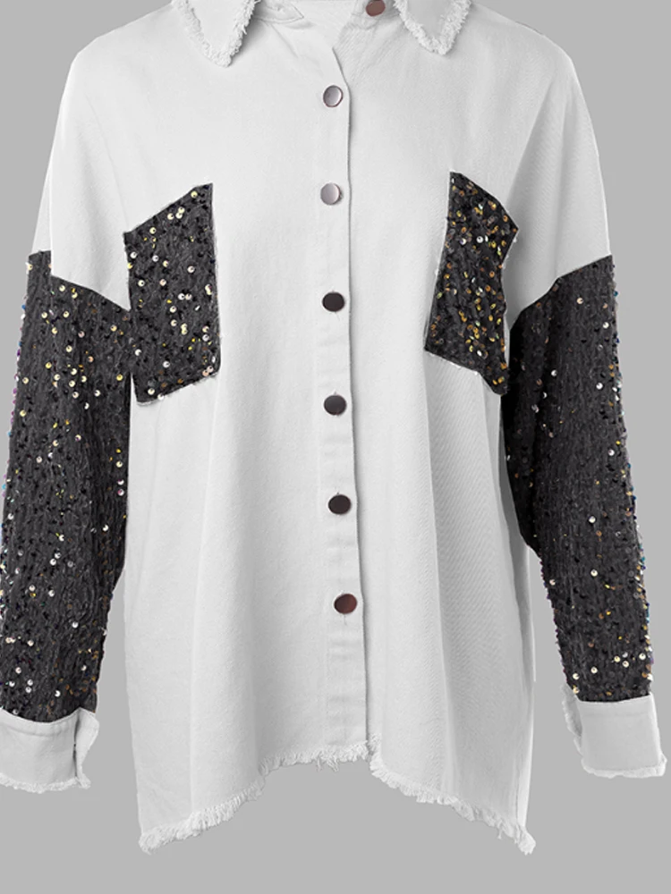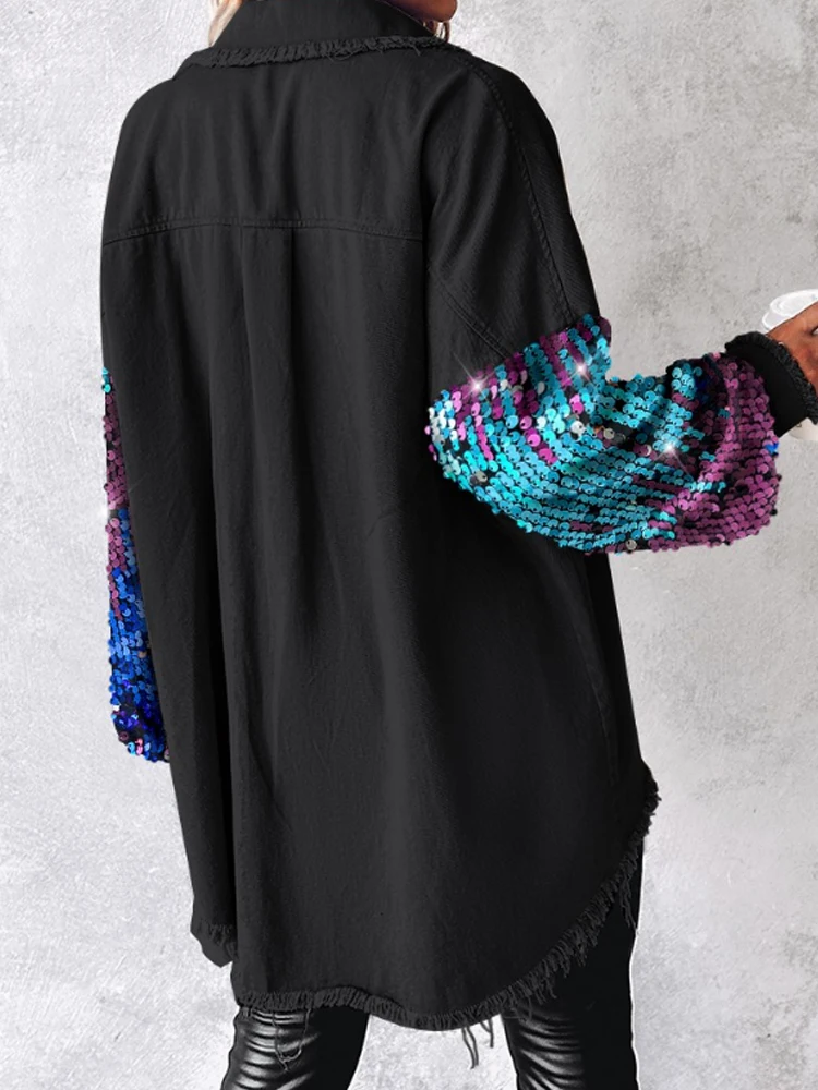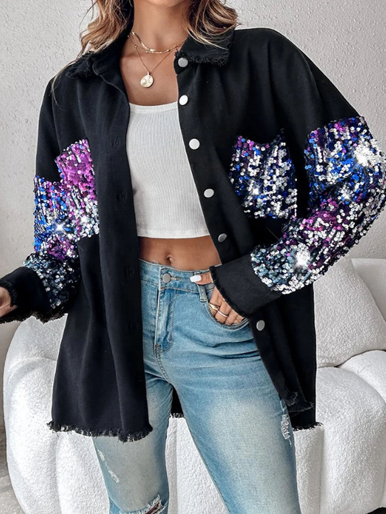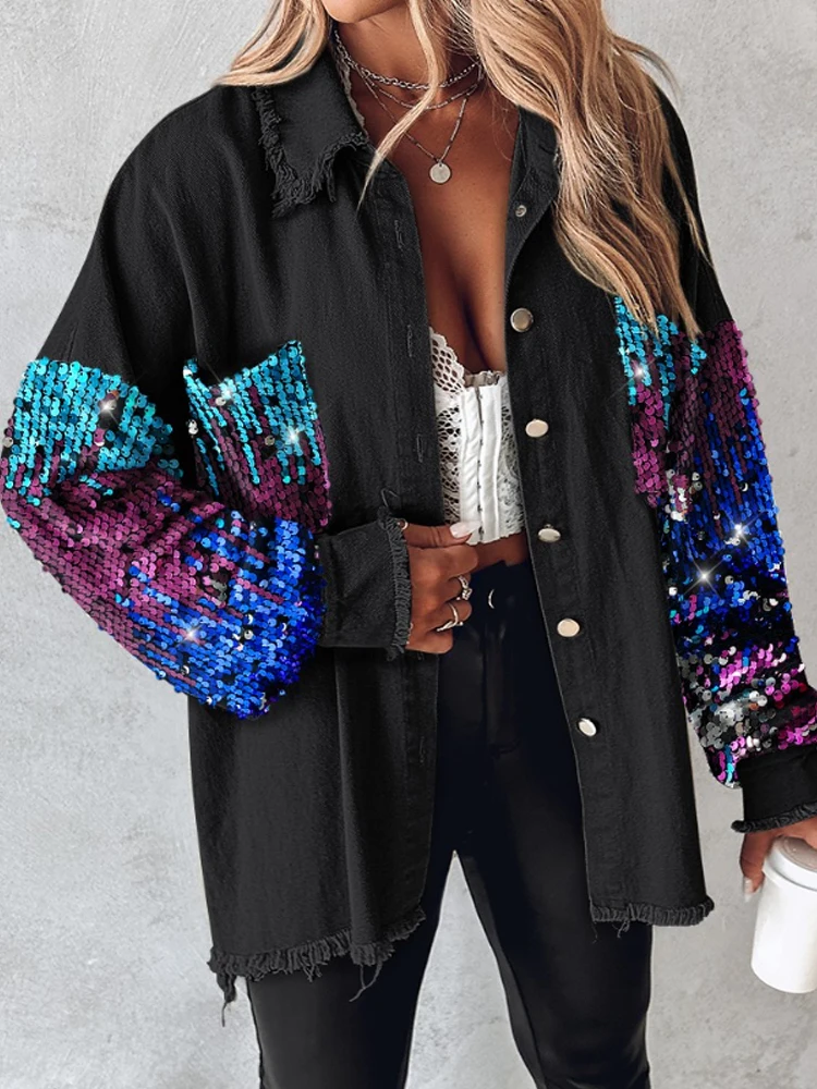 Elegant Colorblock Sequin Patchwork Long Sleeve Jacket Top Button Front Coat